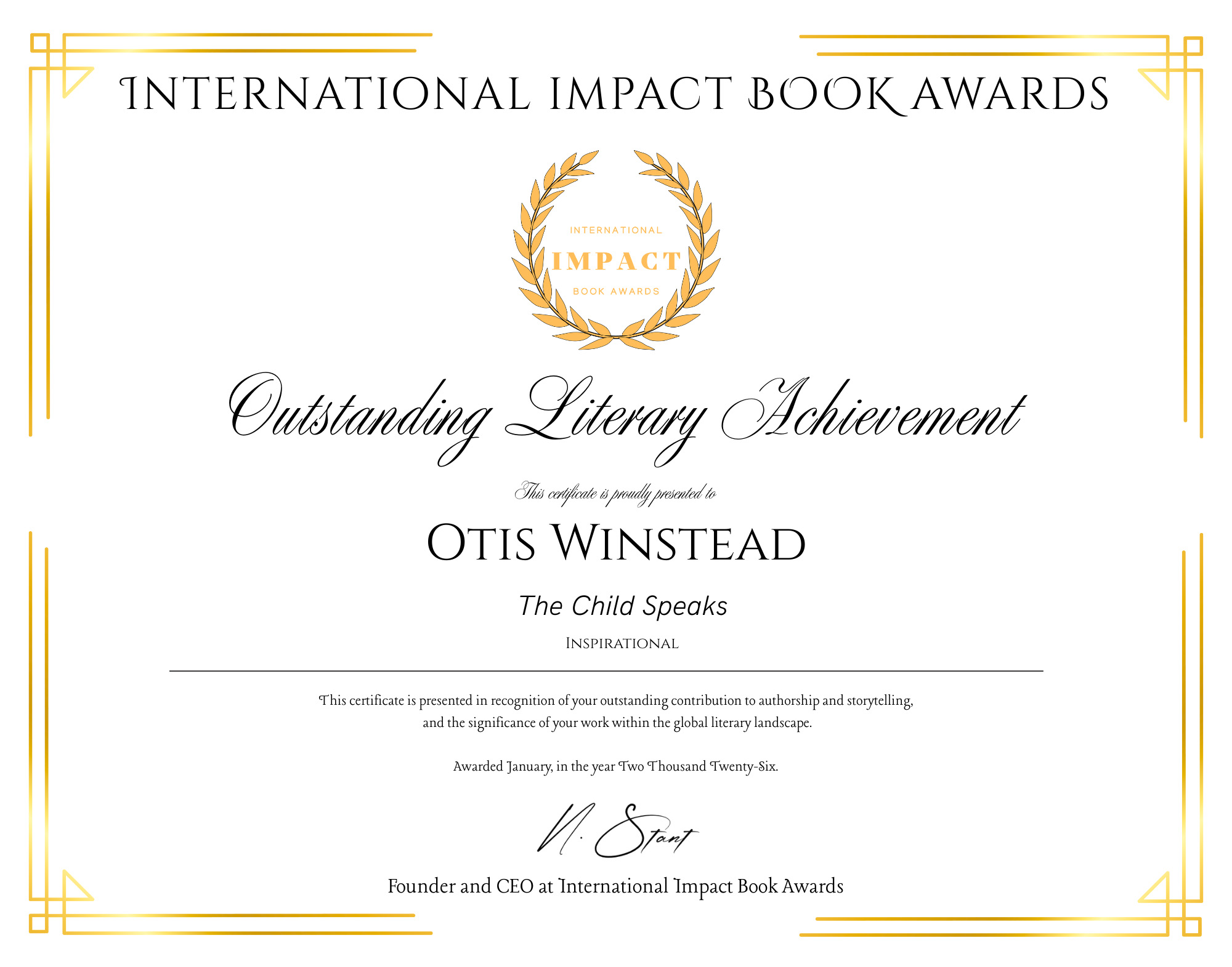 Below is the letter I received along with this wonderful award. Dear Otis, I am delighted to extend my heartfelt congratulations to you on being selected as a winner of the International Impact Book Awards™. Your dedication, creativity, and commitment to your work are deeply evident, and it is an honor to recognize…